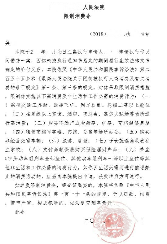 最近接到一位深圳吴姓先生的咨询,本来在新疆旅游,回来的时候发现无法买飞机票,最后才得知自己被限制了高消费,问能不能帮他尽快解除这个限制。深入了解情况之后,原告吴先生先前借了一笔巨额外债,一直没有还,后来对方将其告上了法庭,要求还钱,结果当然是法院判令吴先生还钱,吴先生也没有管后续的事情,没想到现在无法坐飞机,对于吴先生提出的问题,只能告知他尽快还钱。